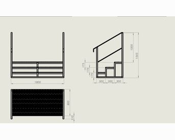 Каркас лестницы выполнен из профильной трубы 40х40 и уголка 40х4 Покрытие ступеней – просечно-вытяжной лист 4мм (может быть заменен на другое покрытие по желанию заказчика) Покраска полимерная порошковая с предварительным нанесением цинкосодержащего грунта.